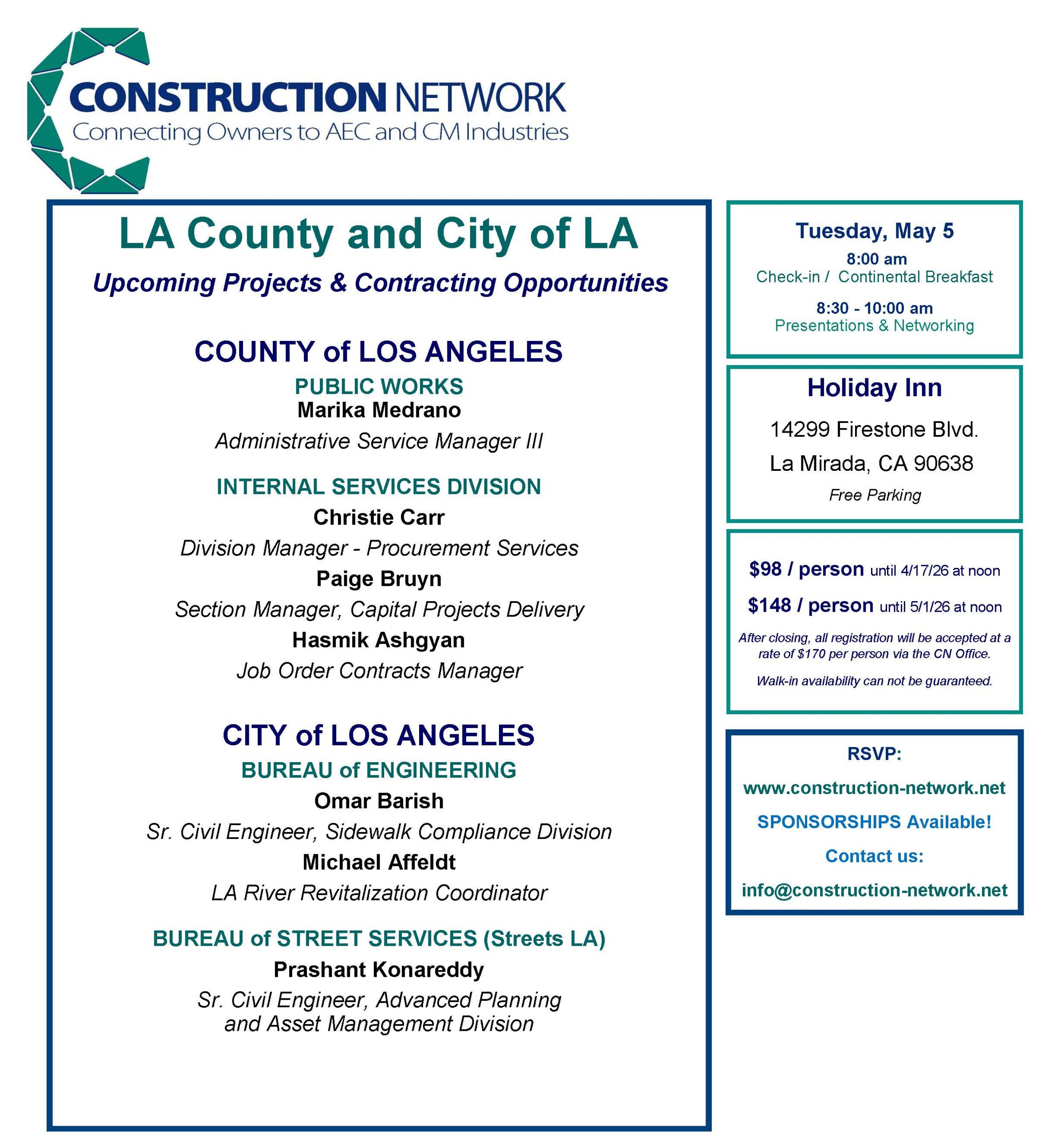 Construction Network - LA County and City of LA  Construction Network is a networking organization that brings together owners with construction service providers. Contracting Network has partnered with the County […]